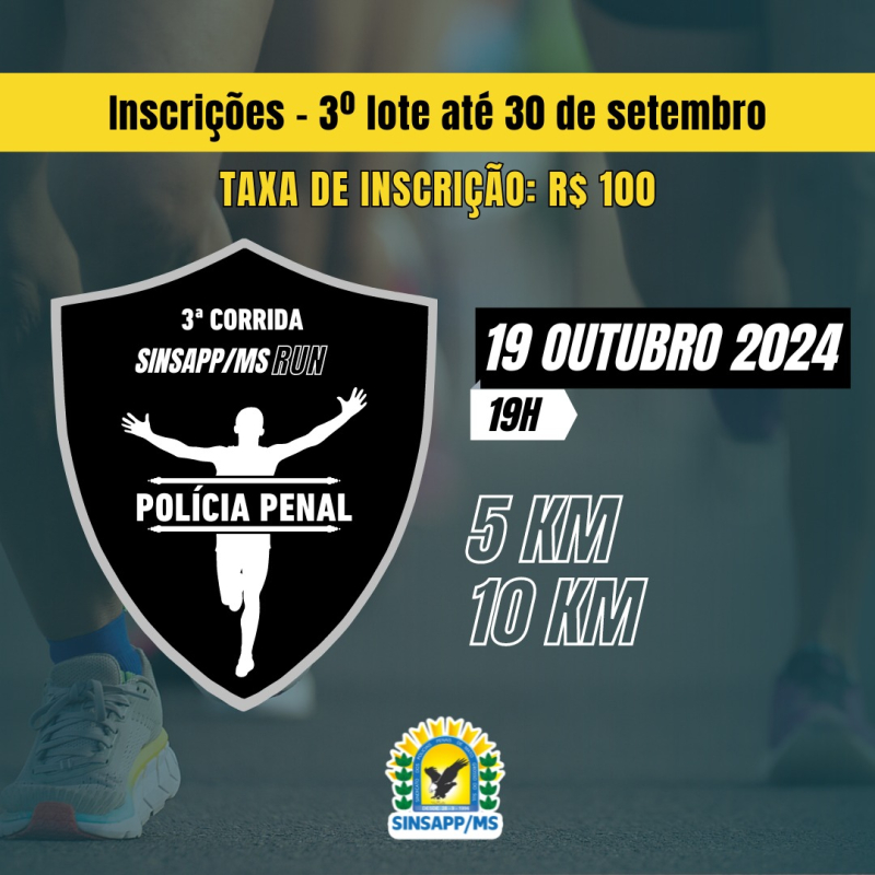 Os policiais penais filiados ao SINSAPP/MS terão cortesia da inscrição. Para se inscrever, basta acessar o site da organização da corrida, fazer o cadastro, selecionar a corrida e, na hora de escolher a equipe, clicar em Filiados SINSAPP/MS. Após revisar os dados, basta colocar o cupom de desconto ASSOSIND.