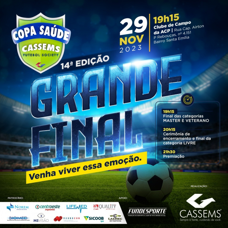 O time do SINSAPP/MS vai disputar a grande final da Copa Cassems, no dia 29 de novembro. A disputa esta marcada para às 19h15, no Clube de Campo da ACP (Rua Capitão Airton P Rebouças, 4.151, Jardim Santa Emília).