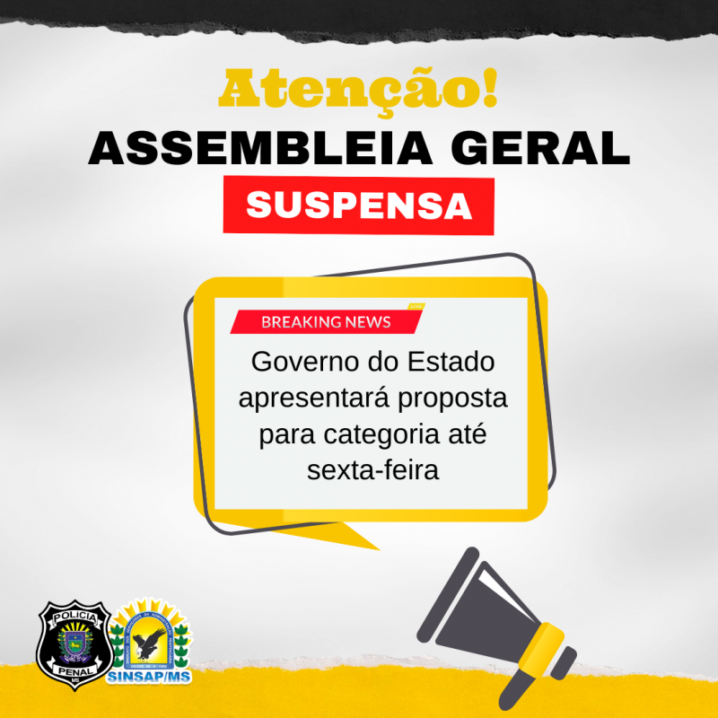 O SINSAP/MS informa que a Assembleia Geral que estava marcada para esta quarta-feira (9) será remarcada para outra data!